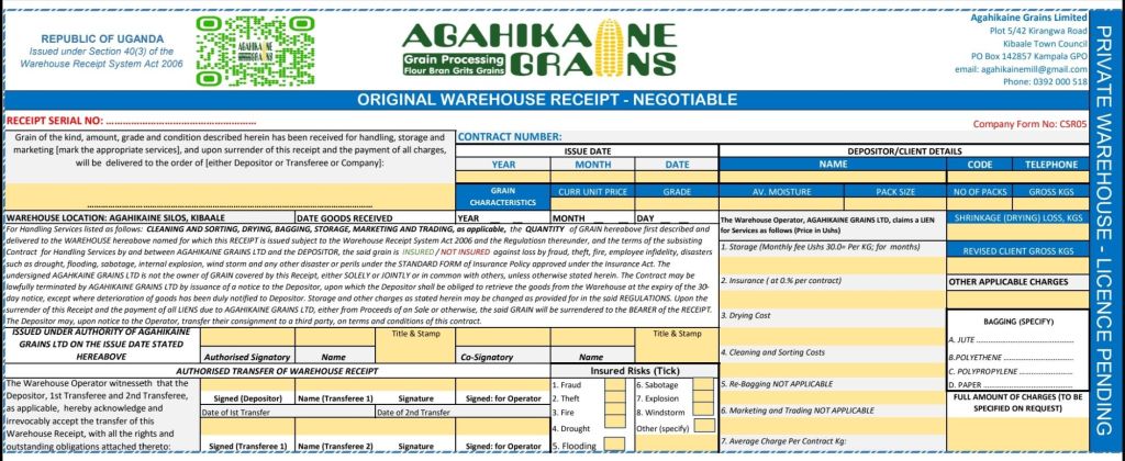 We are now accepting, and issuing warehouse receipts for, contracts of UGX 5m minimum.
